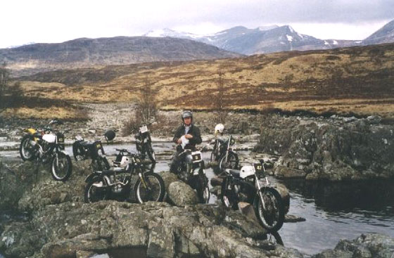 Loch Eilde Path, otro riachuelo. Me dejo un pié para evitar una inoportuna entrada en una poza de agua con los peligrosos resultados que esto supondría para los frenos de mi Greeves.