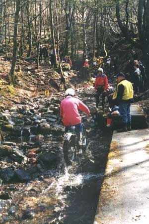 10.19 horas: nos dan la salida. Circulo detrás de Stuart y su preciosa Motoconfort. No puedo evitar que la emoción me impida ver con claridad la carretera y al fin encaramos la primera trialera de la interzona cuando la Motoconfort hace "puff" y se para. Stuart me dice que continúe, que ya se apaña. De acuerdo. Las zonas 1 y 2 van seguidas, aquí tienen nombre y estas son Loch Eilde Bunn. Se trata de un precioso riachuelo sin apenas dificultad, tan sólo un giro en la salida, donde dejo mis primeros pies, ¡uf, empezamos bien!. Sigo y vuelvo a encontrar zonas marcadas como 1 y 2, creo que son las que se hacen mañana, pero me cruzo con el control que me dice que son las de hoy. Por lo que parece, aquí se numera desde el uno la primera zona de cada grupo. Ya estoy mejor, y estas las supero a cero.