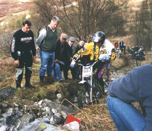 A todo esto llega Stuart como una exhalación, opina que no debo abandonar de esta forma la carrera y en dos minutos se presenta con una Cotton ( muy similar a la Sprite y con el mismo motor). Ponemos mi número en ella y nos vamos en busca de Andrew Johnstone, el secretario del trial, quien coge su Honda para acompañarme a las zonas que me quedan por el camino más corto. Cuando llegamos a la primera, la están desmontando. La miro y la hago, tres, pero es lo de menos. Le digo que creo que me queda otra, habla con el control y le dice que es la última sin demasiada convicción. Abandono el lugar detrás de Andy.