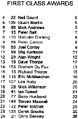 | 2nd Best Performance | Duncan Smith Trophy | 3 Mike Grant | 5 |