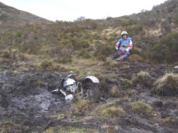 La tarde es bastante dura debido a la lluvia y el barro, una tarde agotadora, la interzona impracticable por el barro y las hierbas que hacían que la moto patinase de delante.