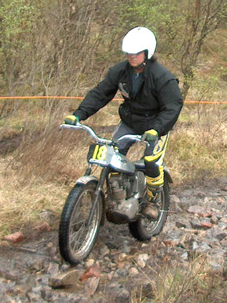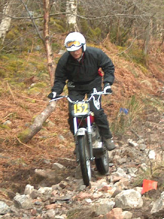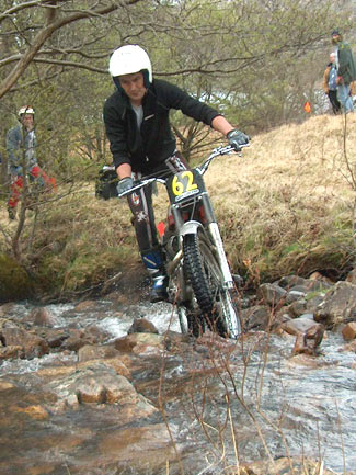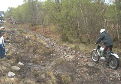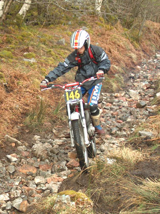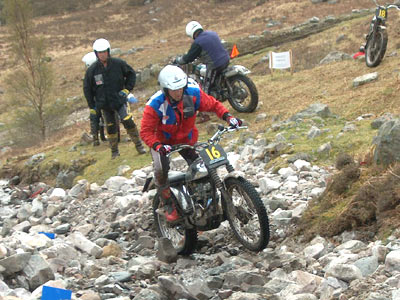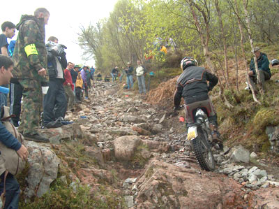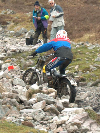 Al final de la tarde, nos estábamos deleitando al observar como Mick Andrews hacía la segunda zona de Aluminium Works y no nos dimos cuenta de que la memoria de la cámara estaba llena, pero te lo tenemos que contar. Después de hacer un cero en la primera parte, Mick buscó la trazada aparentemente más difícil de la segunda de este grupo de dos zonas y se subió con su "little James" por un pedrusco de dos metros cortado en diagonal, por donde no nos atreveríamos ni a pasar a pie. Era la mejor manera de evitar un torrente de agua lleno de piedras que conducía inevitablemente al varios, o al fiasco.