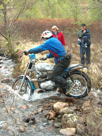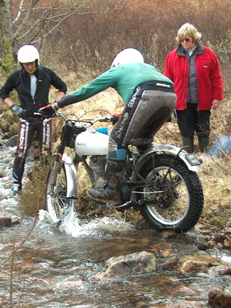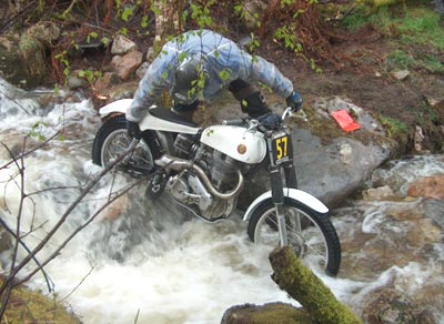 El francés Grosperin probó la misma trazada de Mick con su preciosa Ariel 500 (¿hemos hablado ya del respeto que nos producen estos pilotos?), se dió una buena "galleta" y ambos, piloto y moto, un buen remojón. Ningún problema, el bueno de Philippe sacó la moto de la zona, la puso en marcha de nuevo y salió para la llegada en Aluminium Works con la moto limpita, como si no hubiese corrido. Mañana será otro día.