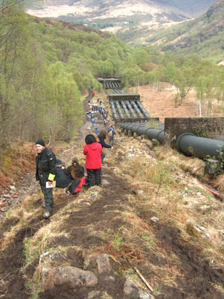 El recorrido del día empieza y termina hoy en la escuela de Kinlochleven. Utiliza básicamente dos recorridos de ida y vuelta, la carretera de Glencoe, con un desvío para hacer el Pipeline de nuevo, y la West Highland Way, una pista que nos lleva en dirección hacia Fort William por las montañas, en paralelo con la carretera de asfalto que une Kinlochleven y Fort William en la que se encuentran las zonas de Mamore, donde podemos apreciar perfectamente que la primavera en Escocia aún no ha alcanzado su plenitud, pues las montañas aún no han mudado su traje parduzco por el verde intenso que todos relacionamos con las "Highlands".