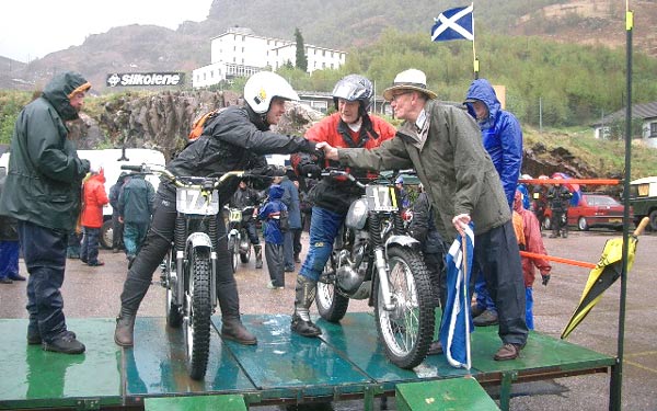 Escuchar como nombraba a nuestros compatriotas el "speaker" Colin Dommett (piloto puntero de los SSDT, donde fue oficial Cotton, y de los pre-65 y cuyo hijo Scott venció en la edición 2003 de los pre-65 con un solo pie a lo largo de los dos días) era todo un espectáculo, cada participante en los Dos Días que logra finalizar recibe un presente de la organización, así Echezarreta se convirtió en "Eketa" y Magriñá en "Magrini". Por cierto, a Ángel Magriñá le conocen en el hotel Cruachan de Fort William como "Bad boy". ¿Por qué será?.