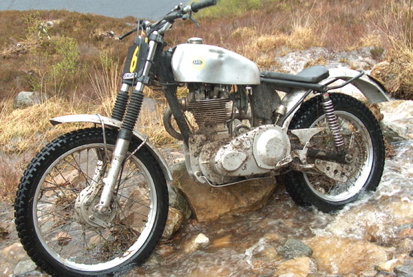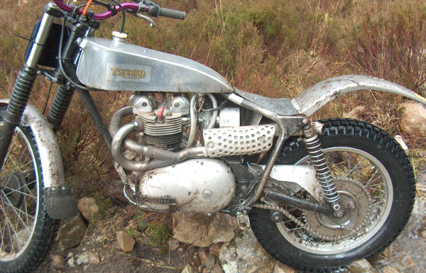 Reproduciendo el proceso por el que se "fabricaban" las motos de trial hasta los años 60 en el Reino Unido, la adaptación de motos de carretera, estos aficionados catalanes han modificado tres de estas bellísimas motos y se las han traído a luchar con las piedras, los torrentes y las endiabladas colinas escocesas.