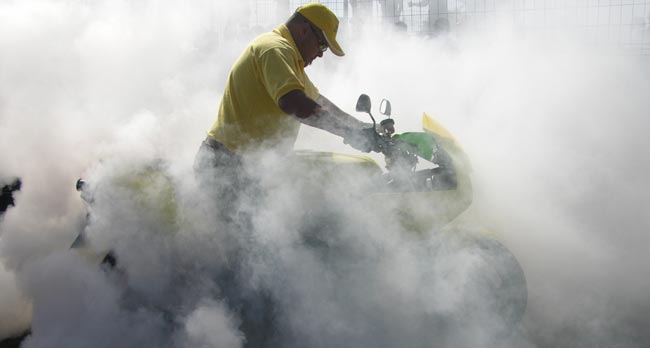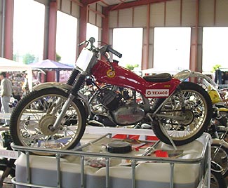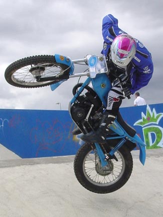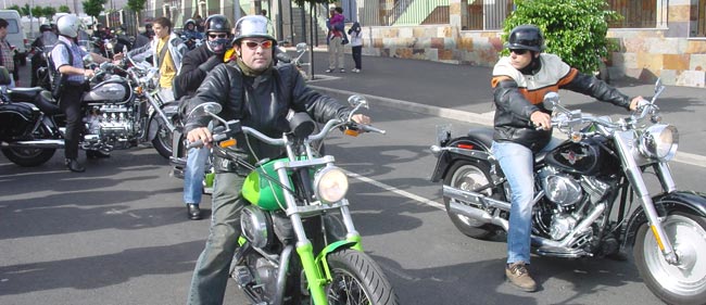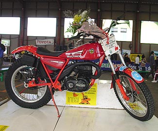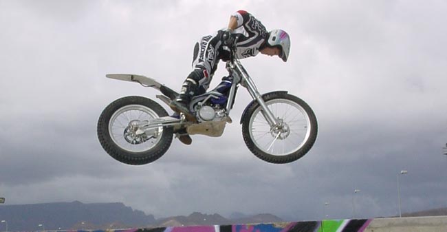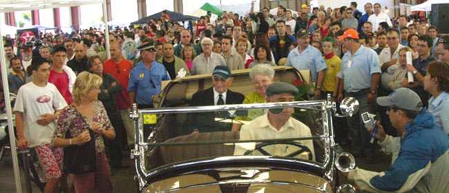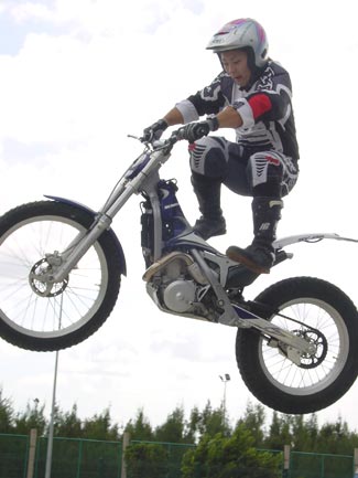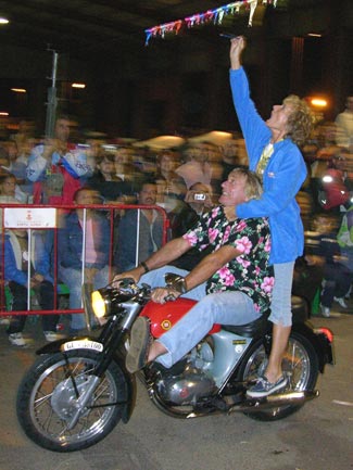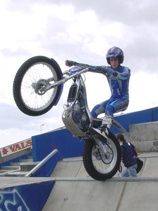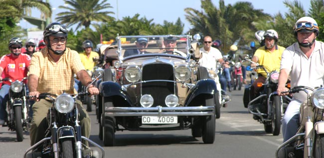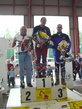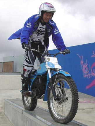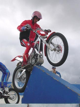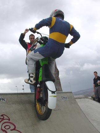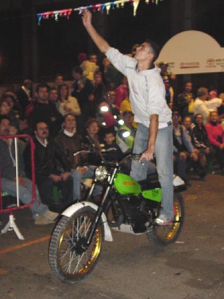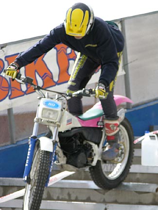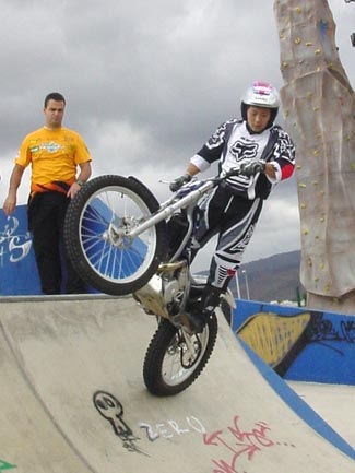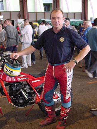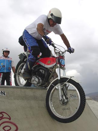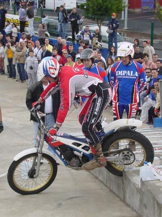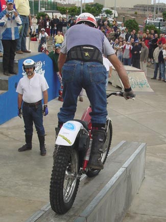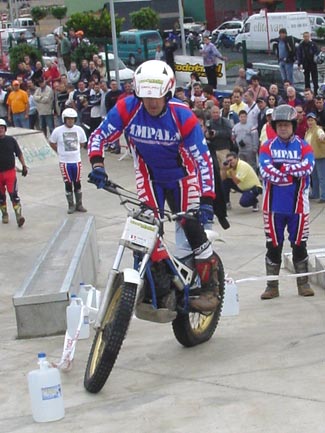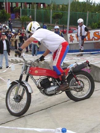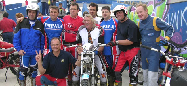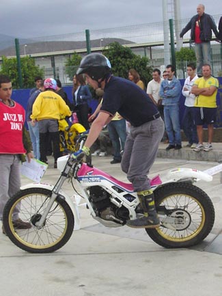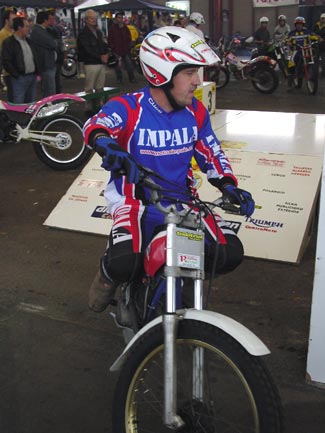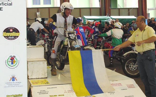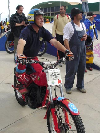![]() Feli Santana, artífice del Viejas Glorias, da la salida en el trial a Mick Andrews |