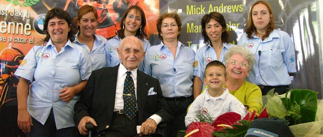 ![]() Henne, el cada records en su centenario junto a su esposa y las chicas de la rganización |