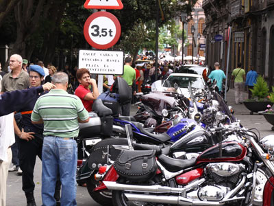 El domingo, se presagiaba el llenazo histórico, cuestión que se confirmó acercándonos a las doce de la mañana. Los moteros de Gran Canaria, entraron en paseíllo por el desfile del honor, los "Setenteros" Los amigos de Jonás, los Ángeles, Vespa Gran Canaria, Moteros del Norte, Los Lajas, Moteros del Taro. Una mezcla de clubes y colectivos que han encontrado el espacio de su condición en la ensalada de las Viejas Glorias.