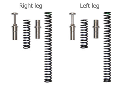 de muelles de horquilla de tres durezas distintas para adaptar a los
