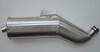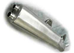 El silenciador está totalmente fabricado en aluminio, lo que le hace bastante más ligero que el original y, como puedes observar, la cola del escape es diferente de la de serie, con dos salidas independientes. Otra ventaja más es que se trata de un silencioso sin mantenimiento, ya que a diferencia del original no lleva fibra interior, por lo que su duración es de por vida.