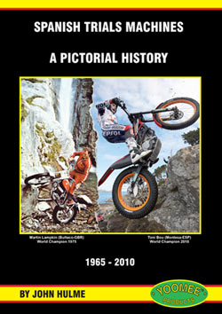 Esta nueva publicación de John Hulme cuyo título se traduce como "Motos de Trial Españolas, historia fotográfica, 1965-2010" cubre todo el periodo desde la llegada de la "armada española" en territorio de las marcas británicas a principios de los años sesenta y nos conduce hasta la actualidad, en la que aún las marcas españolas están dominando el Trial. El libro, plagado de fotos, nos descubre los orígenes de Alfer, Bultaco, Clipic, Gas Gas, JJ Cobas, Mecatecno, Merlin, Montesa, Ossa, Sherco, Xispa y XPA. Muestra todo el desarrollo de las motos y las marcas e incluye muchas fotos nunca vistas de pilotos que colaboraron en ello, como Sammy Miller, Mick Andrews, Don Smith, Malcolm Rathmell, los Lampkin: Alan, Martin, John y el siete veces campeón Dougie, Jordi Tarrés, Steve Colley, Toni Bou, Graham Jarvis, y muchos otros. Este soberbio libro es una autentica mina de información y contiene más de doscientas fotos que disfrutarán apasionados de todas las edades, con 126 páginas de datos y fotos. Imprescindible para cualquier aficionado al trial. | ||