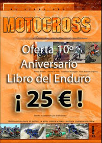 "El libro del Motocross" va dirigido no sólo a todos los aficionados a este deporte, sino también a todos los amantes del motociclismo. Desde técnica de pilotaje, descrita y analizada paso a paso y con gran apoyo gráfico, hasta cómo para mantener a punto nuestras motos. Otros aspectos, como la preparación física y los estiramientos merecen una atención especial, con sus propios capítulos. También se trata sobre los orígenes y evolución del motocross, su desarrollo en España, e incluye un repaso a aquéllos pilotos que han hecho historia, tanto nacionales como internacionales que un día nos hicieron soñar, así como sus motos, donde se puede apreciar la evolución técnica de este deporte. Se ha contado con la colaboración de tres de los mejores pilotos del mundo: Stefan Everts, Jonathan Barragán y Javier Gª Vico. Por tanto será de utilidad tanto para el piloto novato como para los que ya cuentan con experiencia o como para los aficionados que no practican el Motocross pero les gusta también esta modalidad. En total 248 páginas a todo color de gran calidad, en formato 305x220 mm y tapas duras con sobrecubierta, al igual que "El libro del Trial" y por el mismo precio que este: 42,50 Euros. Se trata en definitiva de saberlo todo o casi todo sobre el motocross, un deporte de lo más fascinante. Consíguelo ya y completa tu colección. Pídelo ya rellenando el formulario de pedido, pinchando aquí. Más información de este producto, pinchando aquí. OFERTA limitada hasta el 7 de enero 2013, antes 42,50, ahora 25 Euros! | ||